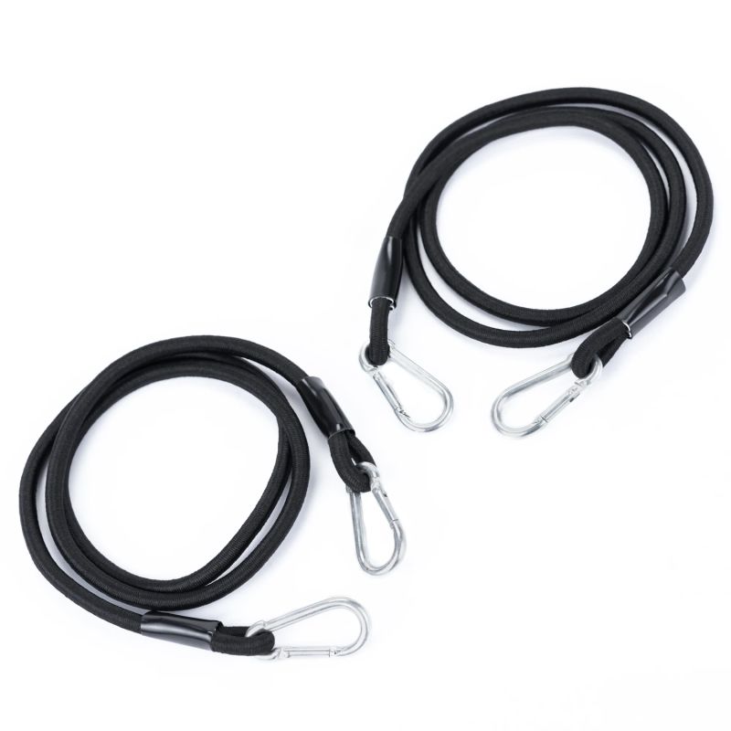 ✅Bezpieczne zawieszenie – gumy z karabińczykami i osłonami nie puszczają nawet przy pełnym naprężeniu.