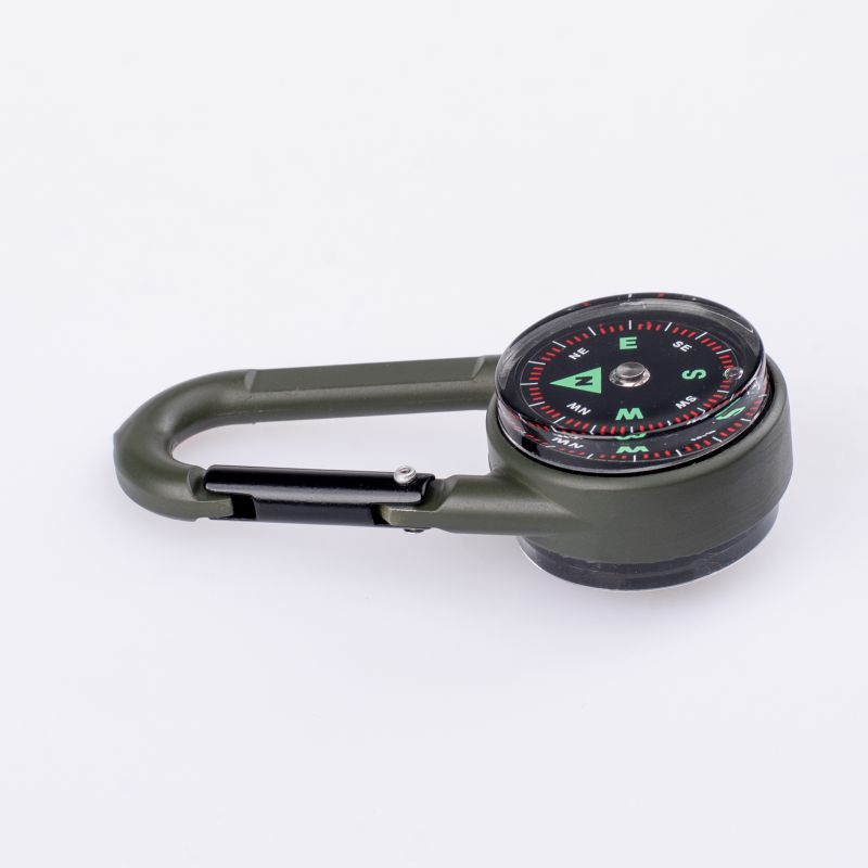 KOMPAS WYMIARY: 6,9 x 3 x 1,9 cm WAGA: 30 g SKŁAD MATERIAŁOWY: KLAMRA: STOP CYNKU OSŁONA TARCZY: AKRYL TARCZA: PVC KOMPAS: ABS BAZA TERMOMETRU: ABS SPECYFIKACJA: - FUNKCJE: KOMPAS, TERMOMETR, KARABIŃCZYK WSPINACZKOWY - LEKKI - ŁATWY DO PRZENOSZENIA