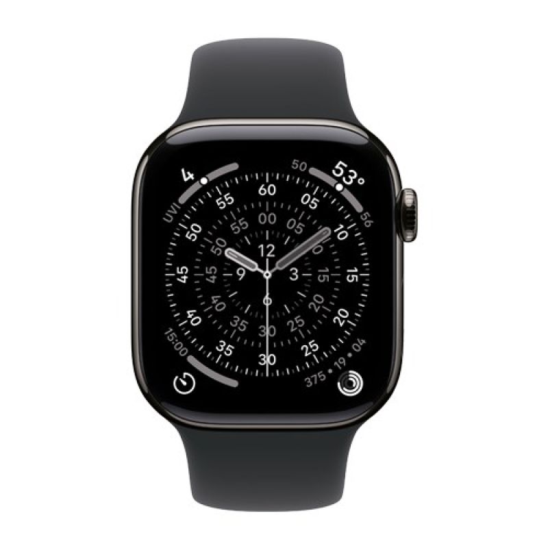 Apple Watch Series 11 Cellular 42mm Łupkowa koperta tytanowa z czarnym paskiem sportowym - M/L