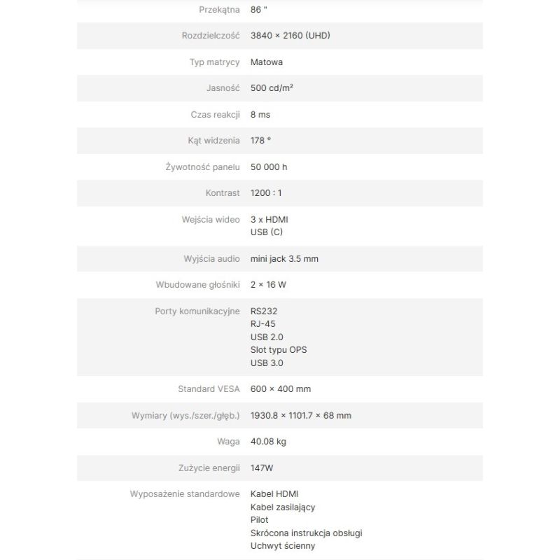 Produkt powinien być poddany specjalistycznej utylizacji w miejscach przeznaczonych do odbioru sprzętu elektronicznego.