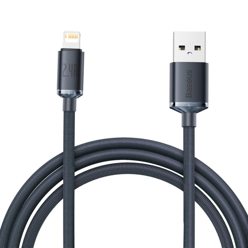 Baseus Crystal Shine Series kabel przewód USB do szybkiego ładowania i transferu danych USB Typ A - Lightning 2,4A 2m czarny (CAJY000101)