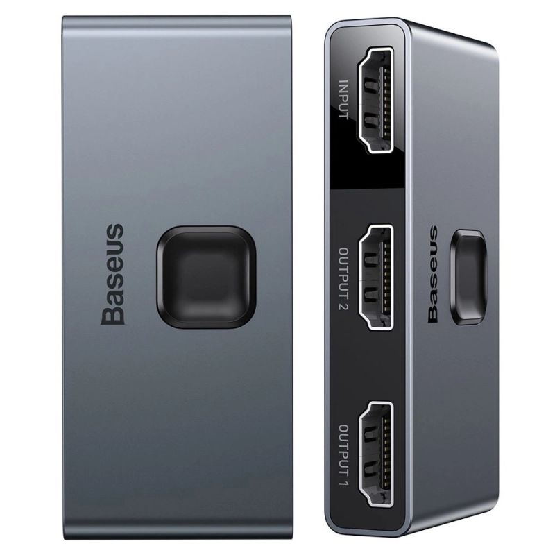 Baseus dwukierunkowy przełącznik rozdzielacz splitter switcher HDMI - 2x HDMI 4K / 30 Hz szary (CAHUB-BC0G)