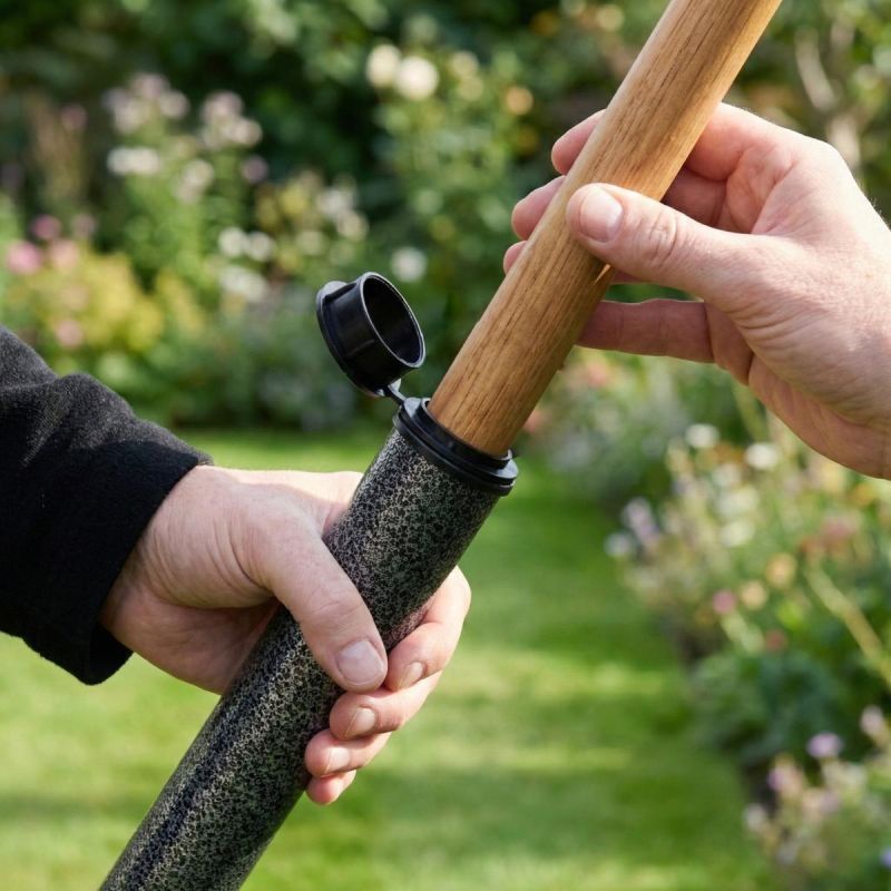Baza - mocowanie umożliwia wygodny montaż parasola z uchwytem o różnej średnicy i na różnego typu podłożu, w piasku na plaży lub w ziemi nad jeziorem czy w ogrodzie. Nie potrzebujesz już specjalnej podstawy, aby zamontować swój parasol, wystarczy tylko wbić w podłoże stalową bazę i włożyć do niej parasol.