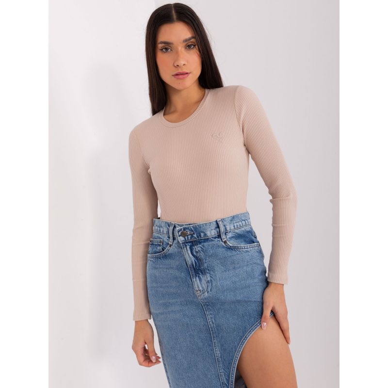 Beżowa bluzka w prążek BASIC FEEL GOOD (RV-BZ-9207.41X)