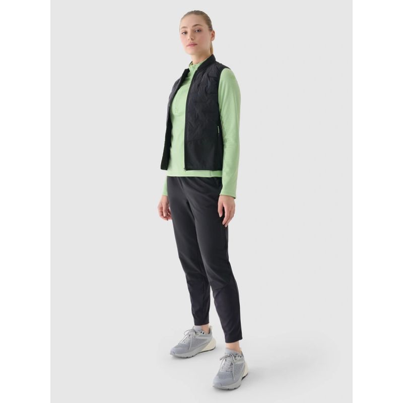 Damski bezrękawnik do biegania 4F to ultralekka warstwa zewnętrzna zaprojektowana z myślą o bieganiu i treningach w cieplejsze dni, gdy liczy się komfort, ochrona i swoboda ruchów. Dopasowany krój slim oraz standardowa długość do bioder zapewniają aerodynamiczne ułożenie na sylwetce i stabilność podczas aktywności. Oddychający materiał z impregnacją skutecznie odprowadza wilgoć, zapobiega przegrzaniu i chroni w razie nagłego załamania pogody. Zastosowana izolacja PrimaLoft® Silver oferuje wydajne ciepło przy minimalnej wadze, zachowując swoje właściwości nawet w wilgotnych warunkach. Szybkoschnące wykończenie w technologii 4FDry wspiera utrzymanie suchości podczas wysiłku, a ekologiczna impregnacja Bionic Finish® Eco (bez PFC) zwiększa odporność na wodę i zabrudzenia bez ograniczania oddychalności. Funkcjonalne detale – zapinane kieszenie, elementy odblaskowe oraz możliwość spakowania kamizelki do wewnętrznej kieszeni – czynią ją niezawodnym wsparciem na każdym dystansie.