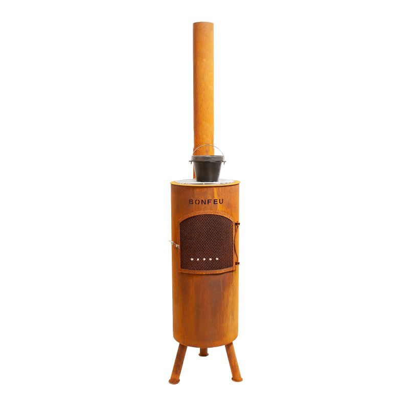 BonFeu BonGiano LP to wielofunkcyjny kominek ogrodowy, który łączy styl, funkcjonalność i wyjątkową atmosferę. Dzięki eleganckiemu designowi i wysokiej jakości wykonaniu, doskonale prezentuje się na tarasie lub w ogrodzie, tworząc przytulną przestrzeń do relaksu i gotowania.