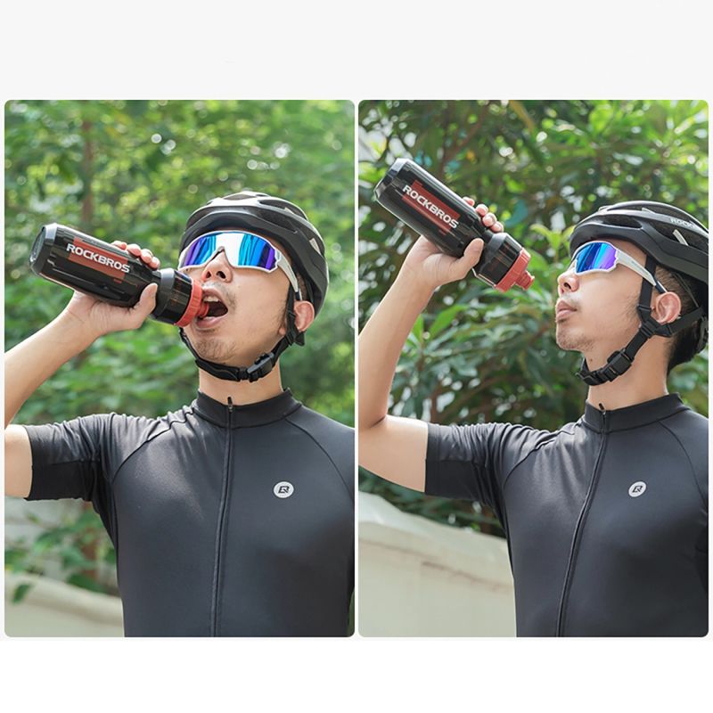 Bidon rowerowy Rockbros 750 ml - przezroczysto-czarny z czerwonym ustnikiem