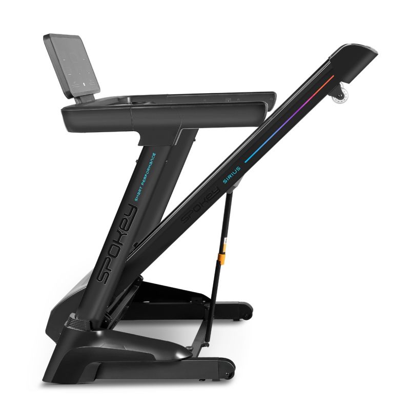 Nowoczesna bieżnia wyposażona w silnik bezszczotkowy, który charakteryzuje większa trwałość i niezawodność. Brak szczotek sprawia, że silnik ma kompaktową konstrukcję i jest lżejszy, co przekłada się na lepsze wykorzystanie energii. Duży wyświetlacz LED pozwala monitorować czas, dystans, prędkość oraz puls. 12 programów treningowych oraz możliwość zmiany nachylenia bieżnia pozwala na idealne dopasowanie treningu do własnych potrzeb. Możliwość składania oraz kółka transportowe ułatwiają transport oraz przechowywanie. Dane techniczne: typ: Bieżnia elektryczna moc silnika: 3,5 HP silnik bezszczotkowy maksymalna prędkość: 18 km/h nachylenie: 1–15 poziomów, automatyczne wyświetlacz: LED funkcje wyświetlacza: czas, dystans, prędkość, puls, kalorie, nachylenie, pauza pomiar pulsu: tak liczba programów treningowych: 12 aplikacje: Spax, Zwift, Kinomap bluetooth: tak wbudowane głośniki wymiary: 190 x 84 x 139 cm wymiary po złożeniu: 130 x 84 x 139 cm rozmiar pasa do biegania: 138 x 50 cm przechowywanie: w pionie łatwa metoda smarowania waga urządzenia: 80 kg max. waga użytkownika: 140 kg kółka transportowe: tak Informacje dotyczące bezpieczeństwa: Nigdy nie wystawiaj bieżni na działanie wilgoci lub deszczu. Bieżnia nie jest przeznaczona do użytku na zewnątrz. Nie należy jej używać w pobliżu basenu lub innego środowiska o dużej wilgotności powietrza. NIEBEZPIECZEŃSTWO – Niewłaściwe podłączenie przewodu uziemiającego urządzenia może spowodować ryzyko porażenia prądem. Jeśli masz wątpliwości, czy produkt jest prawidłowo uziemiony, skontaktuj się z wykwalifikowanym elektrykiem lub serwisantem. Nie modyfikuj wtyczki dołączonej do produktu - jeśli nie będzie pasować do gniazdka, właściwe gniazdko powinno zostać zainstalowane przez wykwalifikowanego elektryka. UWAGA! Jeśli odczuwasz ból lub ucisk w klatce piersiowej, nieregularne bicie serca, duszność, czujesz się słabo lub odczuwasz dyskomfort podczas ćwiczeń, NATYCHMIAST PRZERWIJ TRENING! Przed kontynuowaniem skonsultuj się z lekarzem. To urządzenie nie jest przeznaczone dla osób (w tym dzieci) o obniżonej sprawności fizycznej, z niepełnosprawnością fizyczną lub umysłową, ani dla osób, które nie mają doświadczenia w ćwiczeniach na podobnym urządzeniu lub nie mają wystarczających informacji i nie zapoznały się z instrukcją obsługi bieżni. Osoby te mogą ćwiczyć na urządzeniu wyłącznie pod ścisłym nadzorem upoważnionej osoby, która jest bezpośrednio odpowiedzialna za ich bezpieczeństwo. W żadnym wypadku nie należy pozwalać dzieciom bawić się urządzeniem.
