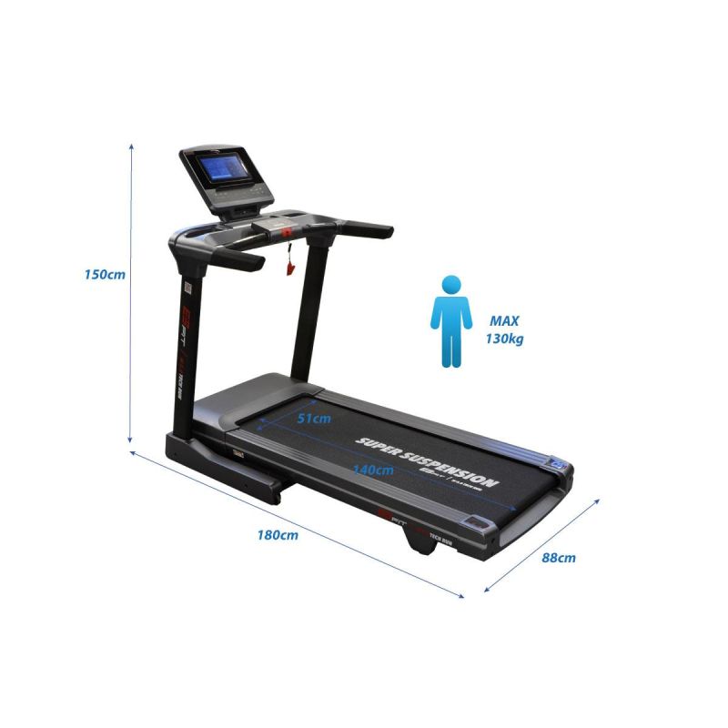 Duży i czytelny wyświetlacz dotykowy tupu TFT to nic innego jak 10,1” tablet cechujący się wybitnie szybką pracą i pozwala użytkownikowi cieszyć się pełnym wsparciem GOOGLE. Bieżnia dzięki wbudowanemu odbiornikowi WIFI może być połączona z twoją siecią domową bez dodatkowych nakładek czy pośredniczących urządzeń. USB czy pas piersiowy dołączony w zestawie to przy tym to tylko wspaniałe uzupełnienie.