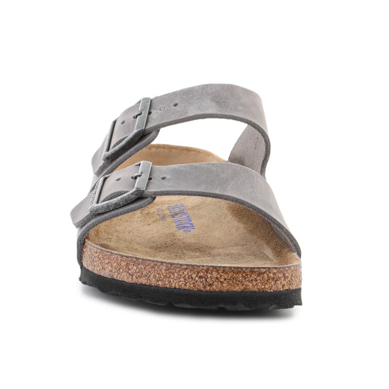 Model Birkenstock Arizona BS 0552801 Iron to kultowe sandały od Birkenstock, które od lat są synonimem komfortu, trwałości i minimalistycznego designu. Ten wariant wykorzystuje cholewkę z oliwionej skóry nubuckowej (oiled leather), która łączy naturalny wygląd z wytrzymałością i dużą odpornością na uszkodzenia.