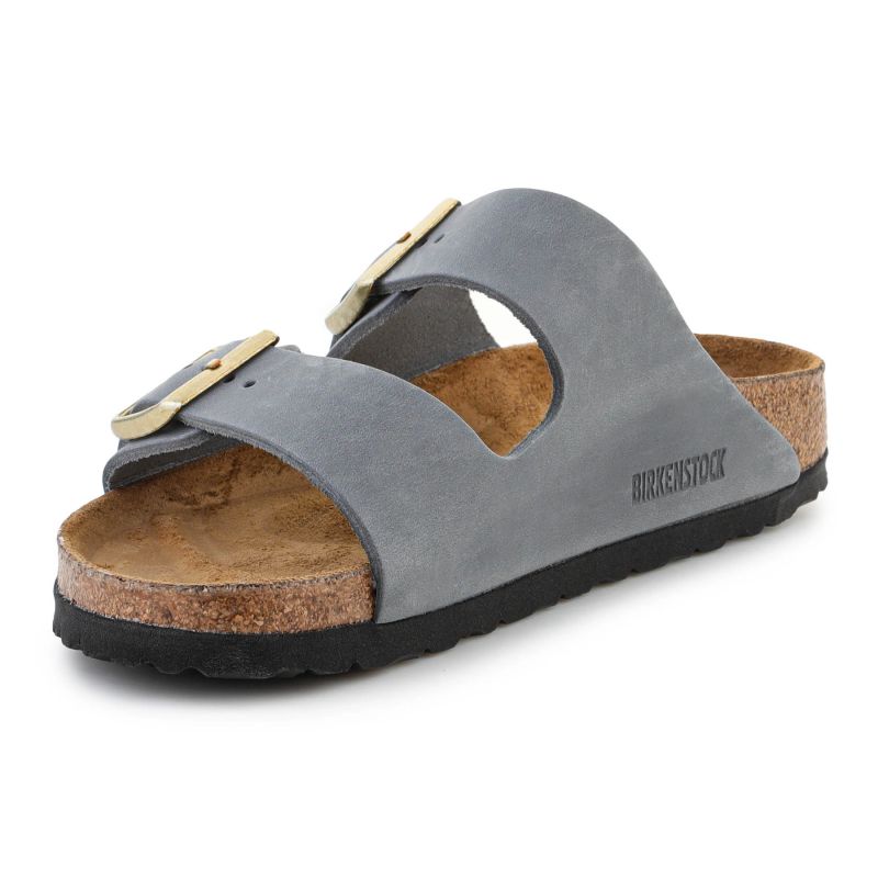 Model Birkenstock Arizona BS 1029253 Basalt Gray to kultowe sandały, które od dziesięcioleci zachwycają minimalistycznym wyglądem i nieprzeciętnym komfortem. Cholewka została wykonana z extra grubego, olejowanego nubukowego skóry naturalnej, co wzmacnia jej trwałość i nadaje głębokiego, matowego odcienia Basalt Gray.