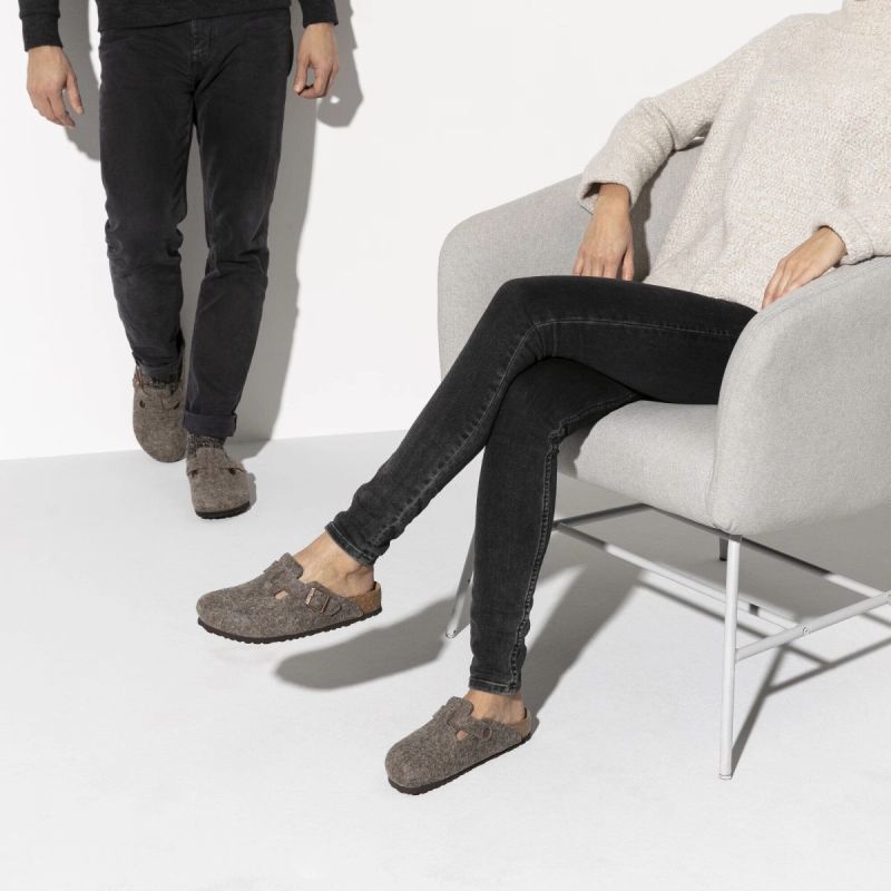 Chodak Boston, klasyk wśród modeli BIRKENSTOCK, charakteryzuje się cholewką wykonaną z miękkiego, wełnianego filcu wysokiej jakości. Zintegrowany pasek z solidną metalową sprzączką pozwala na indywidualnie dopasowanie chodaka do każdej stopy.