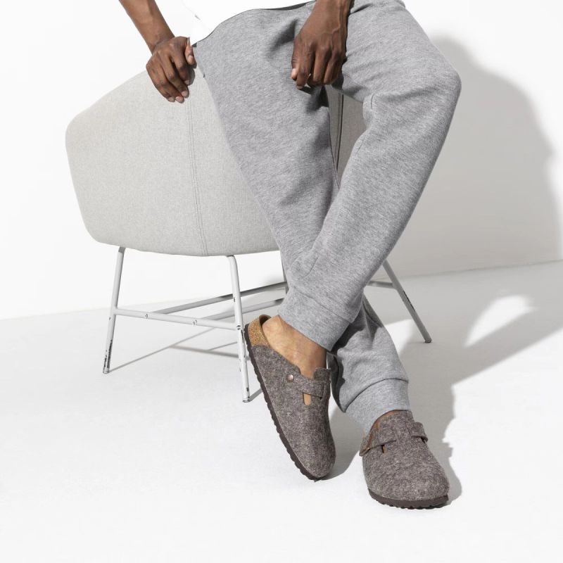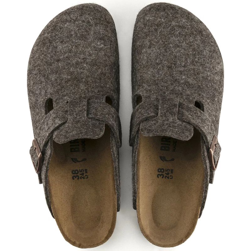 Chodak Boston, klasyk wśród modeli BIRKENSTOCK, charakteryzuje się cholewką wykonaną z miękkiego, wełnianego filcu wysokiej jakości. Zintegrowany pasek z solidną metalową sprzączką pozwala na indywidualnie dopasowanie chodaka do każdej stopy.