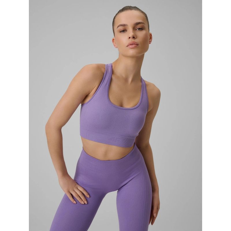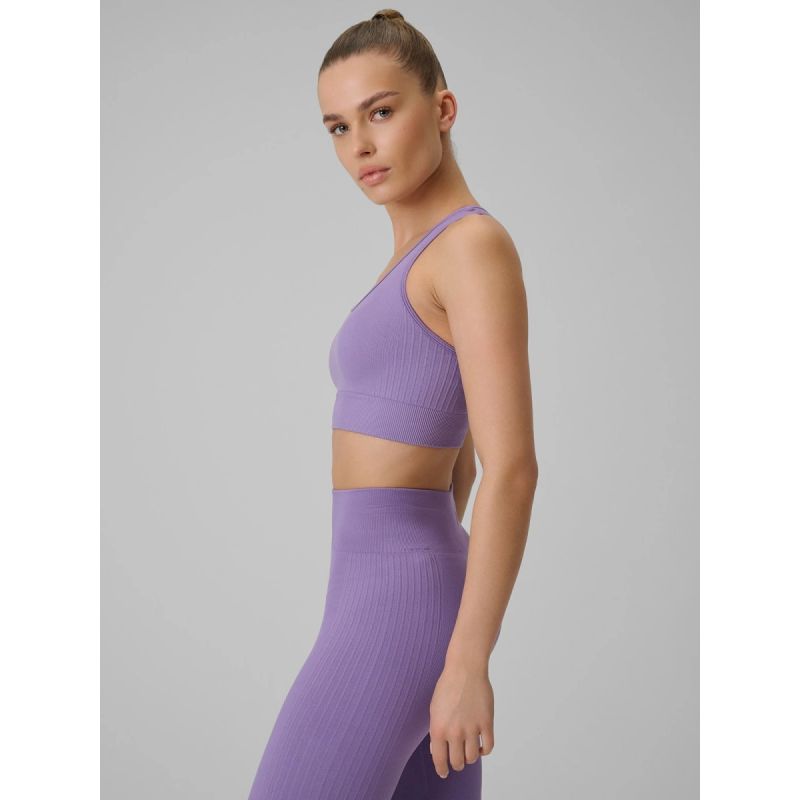 Niski poziom wsparcia sprawia, że model najlepiej nadaje się do mniej intensywnych form aktywności. Wyjmowane wkładki pozwalają dopasować biustonosz do własnych preferencji, a fason bez fiszbin, bez zapięcia i z tyłem typu bokserka sprzyja wygodzie podczas ćwiczeń. W kolekcjach treningowych marki 4F to praktyczna propozycja dla kobiet, które szukają wygodnego biustonosza sportowego do spokojnego treningu.
