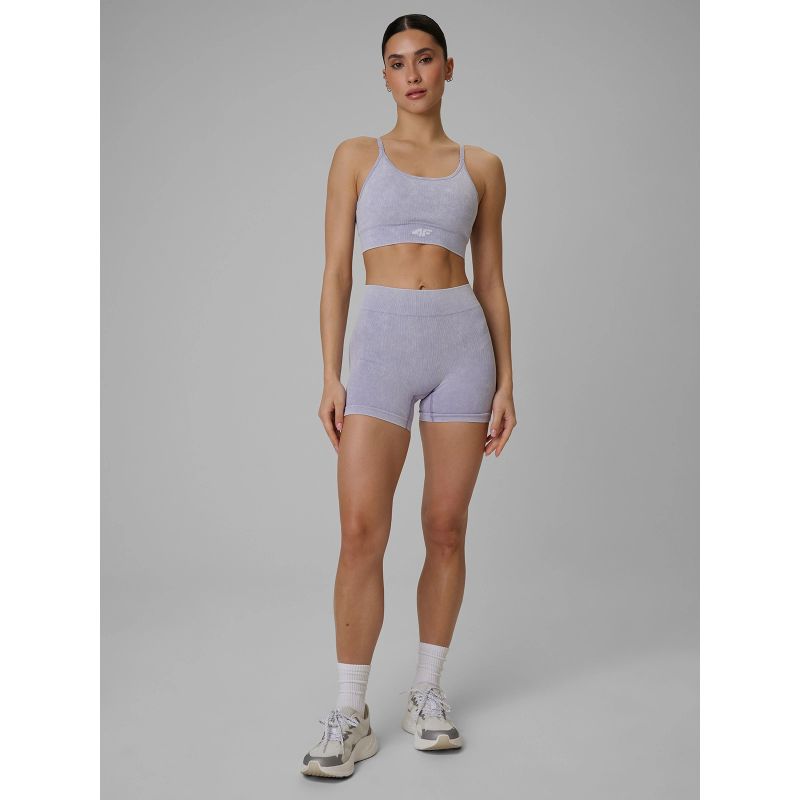 Ten model oferuje niskie wsparcie, dlatego najlepiej sprawdza się przy mniej intensywnym treningu. Regulowane ramiączka ułatwiają dopasowanie do sylwetki, wyjmowane wkładki pozwalają lepiej dostosować fason do własnych potrzeb, a konstrukcja bez fiszbin i bez zapięcia zwiększa wygodę użytkowania. Otwarte plecy nadają całości lekką, sportową formę, charakterystyczną dla funkcjonalnej odzieży marki 4F.