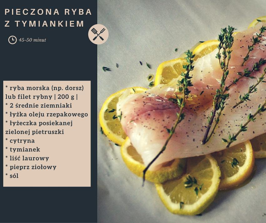 Pieczona ryba morska z tymiankiem to świetny pomysł na posiłek przed treningiem. Prócz walorów odżywczych, zapewni odpowiednią dawkę energii przed czekającym nas wysiłkiem i nie spowoduje przy tym uczucia ciężkości.