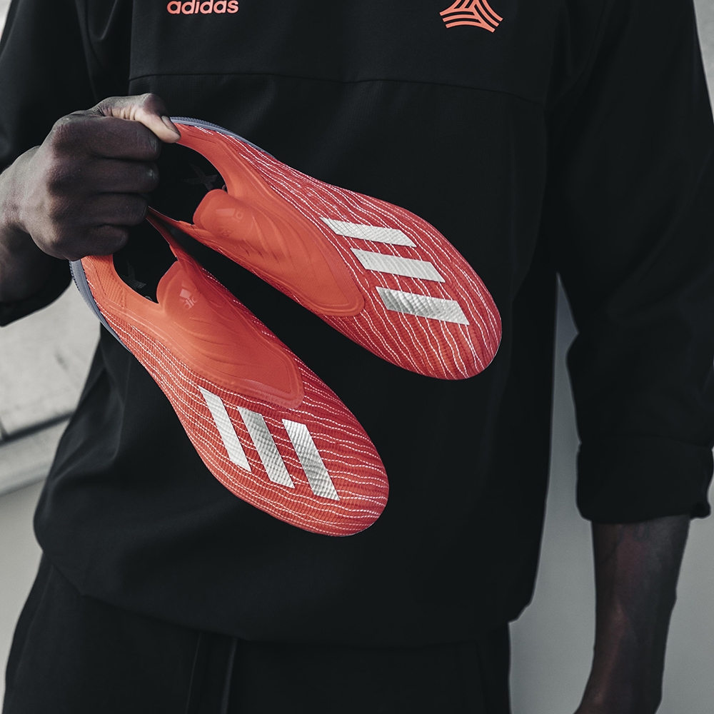 Ostatnim modelem kolekcji Exhibit Pack jest model X. W najnowszej odsłonie ten model ma czerwoną barwę z metalicznymi paskami adidas. Jak zwykle, model X został stworzony dla poprawy stabilności i wsparcia przy sprintach. Niski kołnierz Clawcollar blokuje stopę w bucie, gwarantując stabilizację niezbędną, by zmienić przebieg gry. Specjalna, wyjątkowo sprężysta konstrukcja została stworzona z myślą o rozwijaniu prędkości. Cholewka jest pokryta materiałem Skeletalweave - wyjątkowo cienką, lekką siatką tkanej przędzy. Perforowana podeszwa zewnętrzna Ultralight Speedframe gwarantuje przyspieszenie na naturalnej nawierzchni. Konstrukcja bez sznurowania blokuje śródstopie, gwarantując stabilizację przy dynamicznym sprincie, a także zapewnia bezpośredni kontakt z piłką. Charakterystyczna, formowana, wypukła pięta zapewnia bezpieczne dopasowanie, a amortyzowane strefy to gwarancja optymalnego ruchu w kostce.