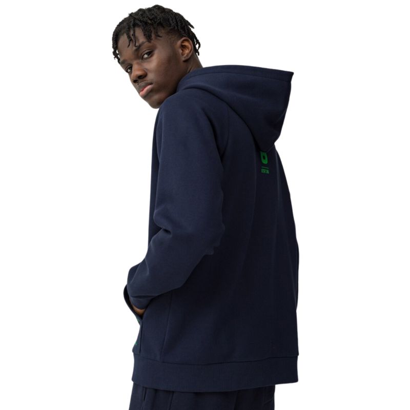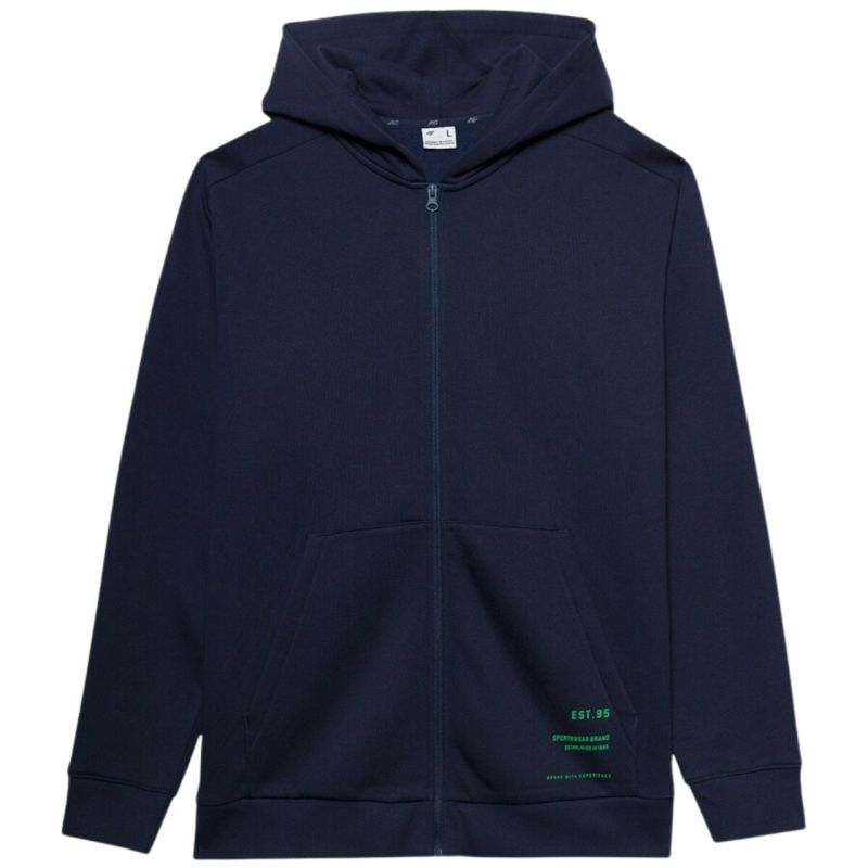 Męska bluza 4F zapewnia komfort w drodze na trening, podczas codziennych aktywności i w trakcie weekendowego odpoczynku. Ocieplana. Rozpinany model. Standardowy krój. Kaptur bez regulacji. Niewielki nadruk z przodu i z tyłu. Otwarte kieszenie z przodu. Mankiety oraz dół wykończone ściągaczem. Czesane wnętrze zapewnia komfort cieplny. Uszyta z przyjemnej dzianiny z wysoką zawartością bawełny.