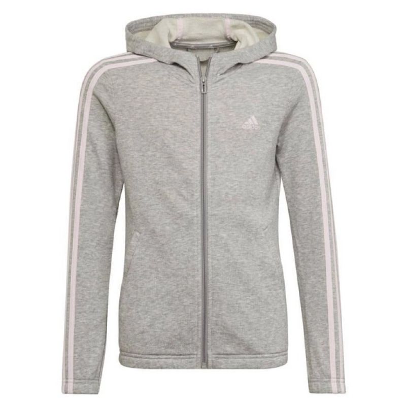 - Dziecięca bluza sportowa Adidas w kolorze szarym z różowymi paskami oraz logiem.