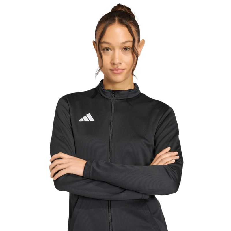 Bluza damska adidas Entrada 26 Track czarna JZ6597 Bluza damska adidas sprawdzi się podczas treningów. Dopasowany krój. Długi zamek. Technologia Climacool pochłania i odprowadza pot. Otwarte kieszenie boczne. Stójka. Materiał: 100% poliester z recyklingu