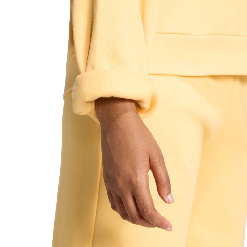 Bluza damska adidas Essentials Small Logo Feelcozy żółta KC5278 Bluza dla kobiet adidas sprawdzi się podczas codziennego użytkowania. Miła w dotyku tkanina. Fason wykończony elastycznymi ścigaczami. Niewielkie, haftowane logo na przodzie. Luźny krój. Lekko ocieplona. Materiał: 70% bawełna, 30% poliester z recyklingu