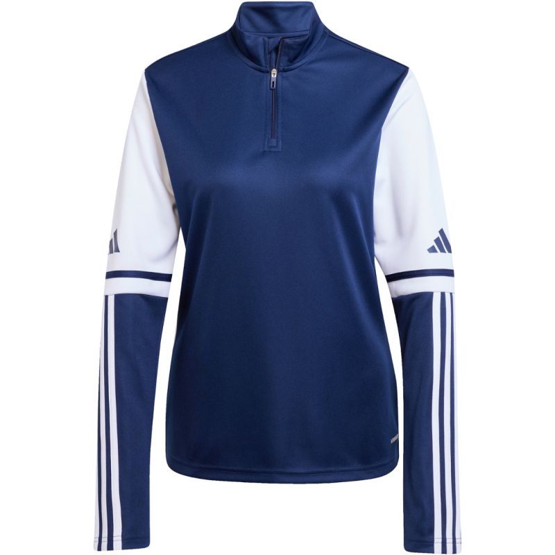 Bluza damska adidas Squadra 25 Training Top granatowa JD3017 Bluza dla kobiet adidas sprawdzi się podczas treningów. Standardowy krój. Szybkoschnąca tkanina z technologią Aeroready odprowadza nadmiar wilgoci. Zamek sięgający do połowy piersi zakończono patką chroniącą podbródek. Stójka. Małe logo. Paski na części rękawów. Ten produkt jest wykonany z wysokiej jakości materiałów pochodzących z recyklingu. Materiał: 100% poliester pochodzący z recyklingu