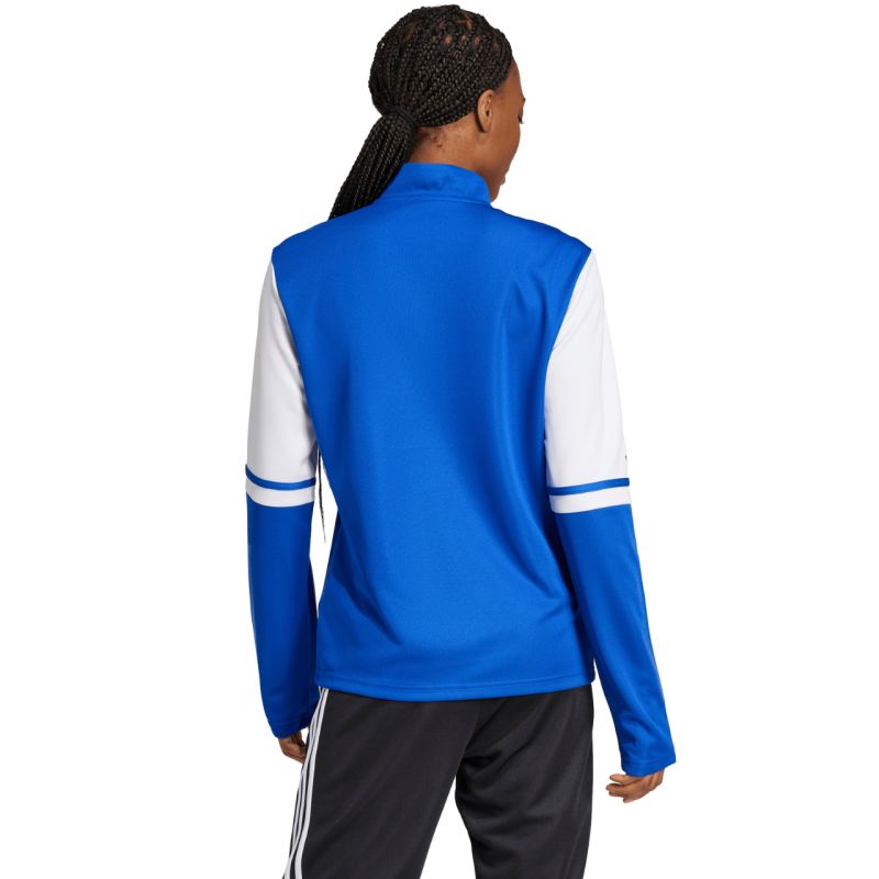 Bluza damska adidas Squadra 25 Training Top niebieska JD3019 Bluza dla kobiet adidas sprawdzi się podczas treningów. Standardowy krój. Szybkoschnąca tkanina z technologią Aeroready odprowadza nadmiar wilgoci. Zamek sięgający do połowy piersi zakończono patką chroniącą podbródek. Stójka. Małe logo. Paski na części rękawów. Ten produkt jest wykonany z wysokiej jakości materiałów pochodzących z recyklingu. Materiał: 100% poliester pochodzący z recyklingu