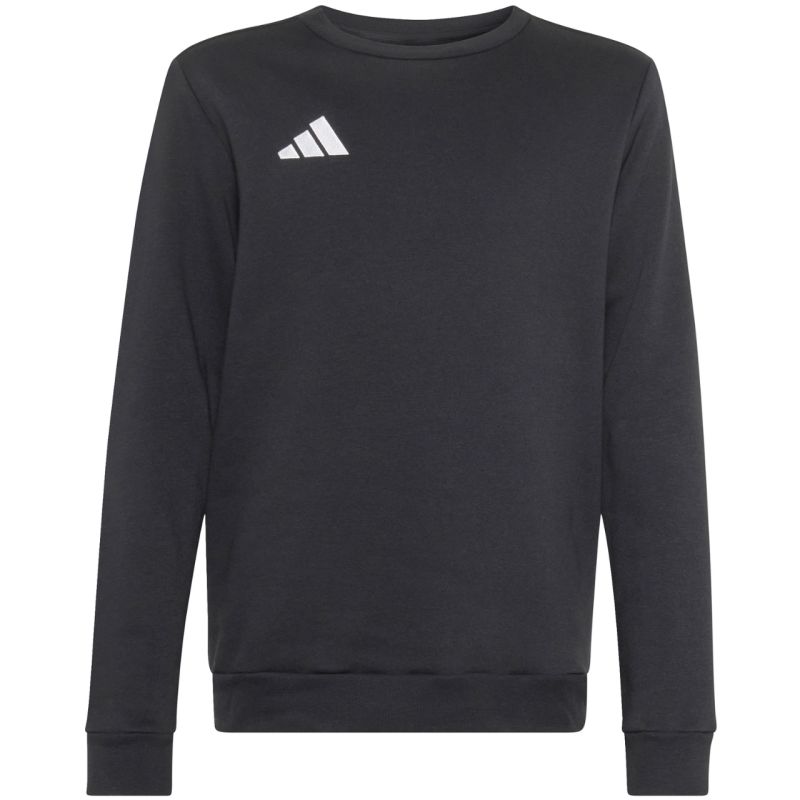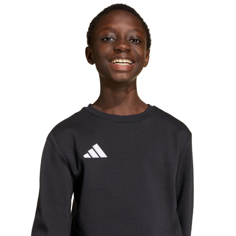 Bluza dla dzieci adidas Entrada 26 Sweat Top czarna JZ6554 Bluza dla dzieci adidas sprawdzi się na boisku i poza nim. Fason pochodzi z piłkarskiej linii Entrada. Regularny krój. Dominująca bawełna wspiera wentylację. Dodatek poliestrowych włókien pochodzi z recyklingu. Polarowe wnętrze. Dół i mankiety wykończono elastycznymi ściągaczami. Haftowane logo. Materiał: 70% bawełna, 30% poliester z recyklingu