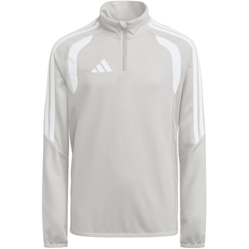 Bluza dla dzieci adidas Tiro 26 League Training Top szara KC3695 Bluza piłkarska adidas przeznaczona dla dzieci sprawdzi się podczas treningów. Wykończony patką chroniącą podbródek, krótki zamek. Dopasowany krój. Technologia Climacool jest funkcjonalnym rozwiązaniem, które zapewnia uczucie chłodu i suchości oraz skupienie na grze. Dół oraz mankiety wykończono elastyczną lamówką. Kontrastowe, siateczkowe wstawki. Paski na rękawach. Subtelne logo na piersi. Materiał: 100% poliester z recyklingu