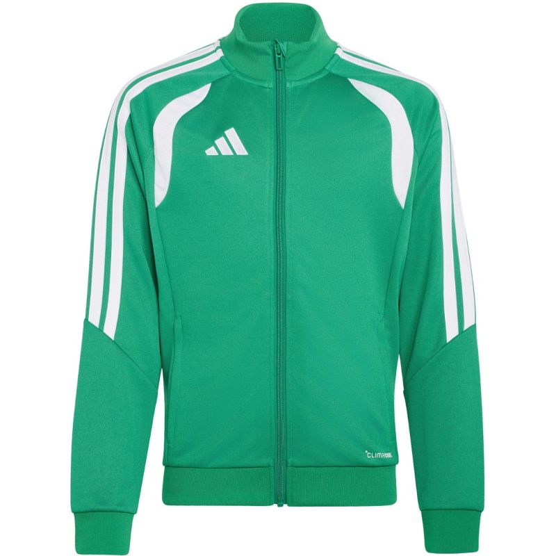 Bluza dla dzieci adidas Tiro 26 League Training zielona KT2338 Bluza piłkarska adidas przeznaczona dla dzieci sprawdzi się podczas treningów. Stójka. Zamek na całej długości. Dopasowany krój. Technologia Climacool odprowadza i rozprasza pot. Paski na rękawach. Subtelne logo. Szybkoschnące włókna. Materiał: 100% poliester z recyklingu