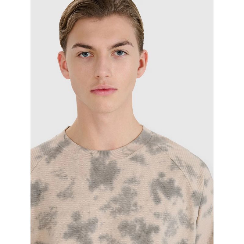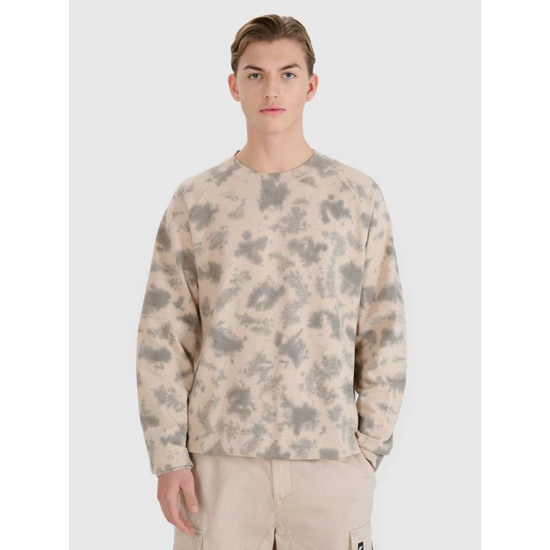 Ta męska bluza dresowa 4F to idealny wybór zarówno do casualowych, jak i sportowych stylizacji. Krój regular zapewnia wygodne dopasowanie, a strukturalna dzianina o wyraźnym splocie nadaje jej charakteru i poprawia komfort użytkowania. Wykonana w 100% z bawełny, bluza jest miękka, trwała i przyjemna w dotyku — idealna do noszenia przez cały dzień. Okrągły dekolt z ribowaniem, elastyczne mankiety oraz dół ze ściągaczem dbają o stabilne dopasowanie. Wkładana przez głowę i pozbawiona kieszeni, zachowuje klasyczny, minimalistyczny wygląd. Dodatkowym atutem jest tie-dye barwienie, które nadaje bluzie unikalny styl.