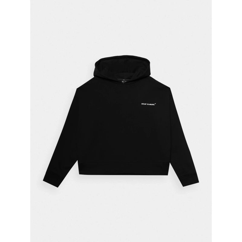 Damska bluza z kapturem, o średniej gramaturze 300 g/m2, jest zarówno miękka, jak i oddychająca, zapewniając wygodę i przewiewność. Damska bluza zapinana na zamek, wykonana z mieszanki zawierającej 80% bawełny, zapewnia wspaniałe wrażenia dotykowe, oferując zarówno trwałość, jak i miękką teksturę. Dodatek 20% poliestru gwarantuje, że tkanina zachowuje swój kształt i wytrzymuje próbę czasu, pozostając odporna na zużycie przez wiele sezonów. Ta lekka bluza bez podszewki jest idealna na słoneczne dni. Posiada zintegrowany kaptur przy szyi oraz elastyczne mankiety ze sznurkiem. Klatkę piersiową zdobi subtelny napis „Stay care 4F”. Dzięki klasycznemu krojowi i brakowi kieszeni tę bluzę można łatwo założyć przez głowę. Obniżone rękawy dodają swobody, a dół wykończony jest szerokim mankietem.
