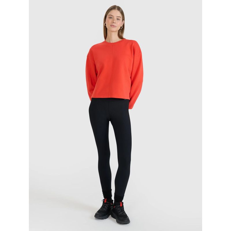 Damska bluza dresowa bez kaptura 4F to idealny wybór do casualowych i sportowych stylizacji. Oversizowy krój zapewnia swobodę i luźne układanie się na sylwetce, co gwarantuje wygodę przez cały dzień.