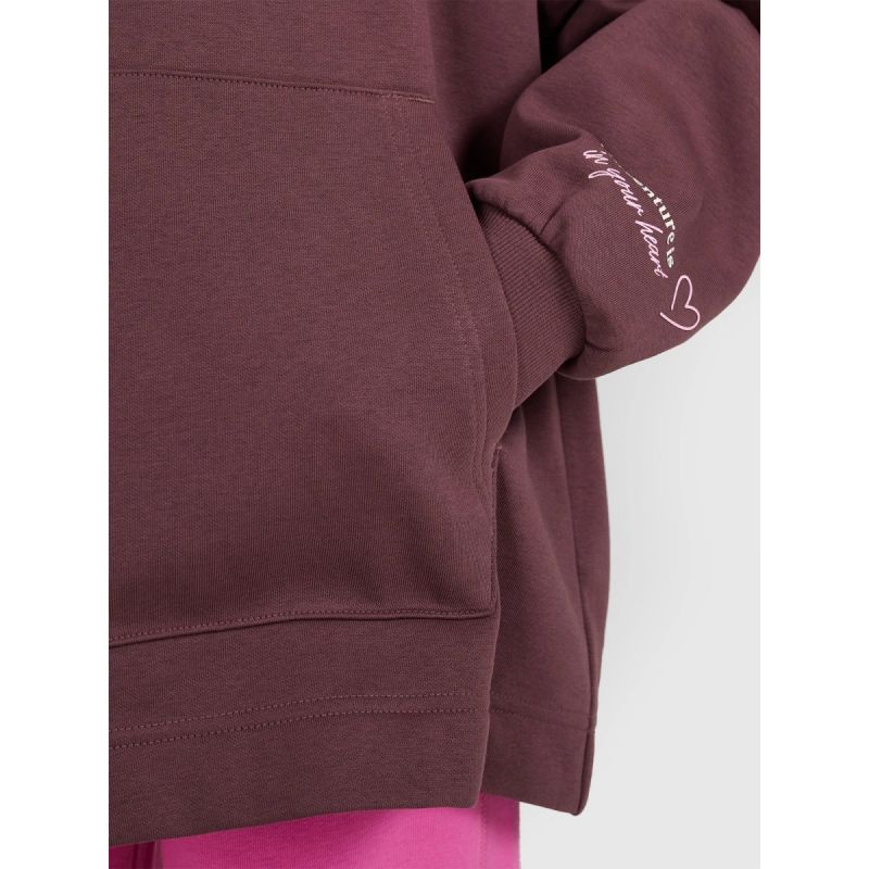 Ta dziewczęca bluza dresowa 4F to wygodny i stylowy wybór na co dzień, zarówno do szkoły, jak i na aktywności na świeżym powietrzu. Krój oversize zapewnia pełną swobodę ruchów, a dzianina single jersey z jednostronnie czesanym wnętrzem gwarantuje miękkość i dodatkowe ciepło. Dzięki gramaturze 300 gsm bluza jest przyjemnie gruba i zapewnia izolację w chłodniejsze dni. Wykonana w 80% z bawełny z dodatkiem 20% poliestru, łączy trwałość, komfort i odporność na zużycie. Zintegrowany kaptur chroni przed wiatrem, kieszeń kangurka przydaje się na drobiazgi lub ogrzanie dłoni, a raglanowe rękawy i wypukły nadruk z przodu nadają całości sportowego, nowoczesnego charakteru.
