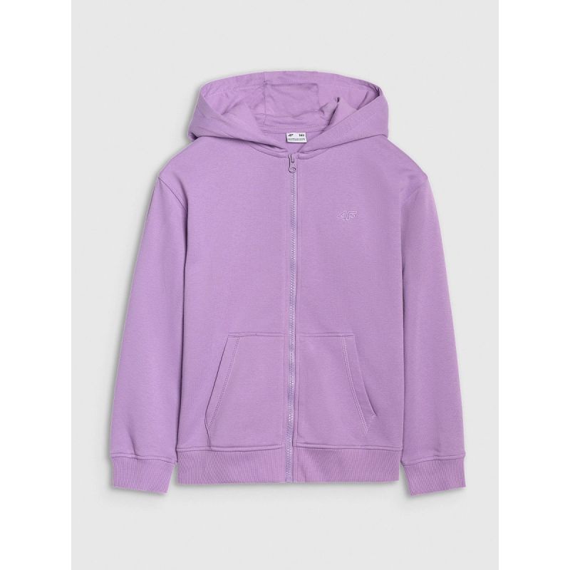 Ta dziewczęca bluza dresowa 4F została zaprojektowana z myślą o komforcie i codziennej aktywności. Krój oversize gwarantuje swobodę ruchu, a dzianina single jersey z jednostronnie czesanym wnętrzem zapewnia miękkość i dodatkowe ciepło w chłodniejsze dni. Dzięki gramaturze 280 gsm bluza jest przyjemnie mięsista, a jednocześnie przewiewna. Wykonana z 80% bawełny i 20% poliestru, łączy trwałość, elastyczność i odporność na zużycie. Zintegrowany kaptur, mankiety i dół ze ściągaczem oraz 2 boczne kieszenie zapewniają funkcjonalność, a obniżona linia ramion dodaje sportowego, nowoczesnego charakteru. Zapinana na jednokierunkowy zamek, idealnie sprawdzi się w szkole, na spacerze i podczas codziennego ruchu.