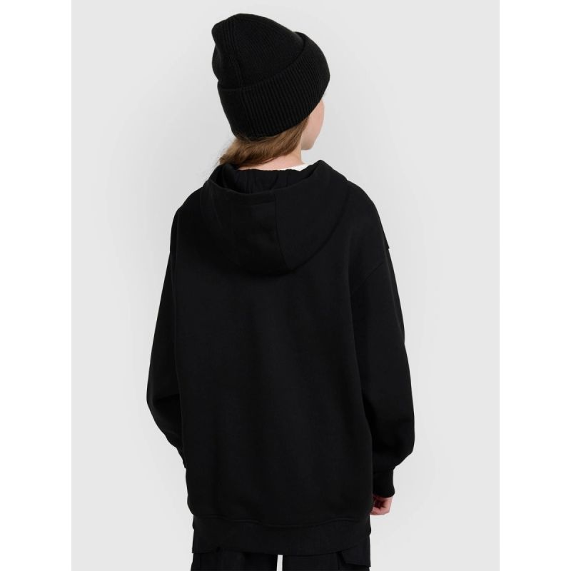 Ta bluza dziewczęca to idealny wybór na chłodniejsze dni – miękka dzianina z dużą zawartością bawełny zapewnia komfort, a czesane wnętrze pomaga utrzymać ciepło przez cały dzień. Luźny fason oversize gwarantuje pełną swobodę ruchów, a praktyczne rozpięcie na zamek sprawia, że bluza świetnie sprawdza się w zmiennej pogodzie. Kaptur połączony z dekoltem daje dodatkową ochronę przed wiatrem, a dwie kieszenie z przodu ułatwiają przechowywanie drobiazgów.