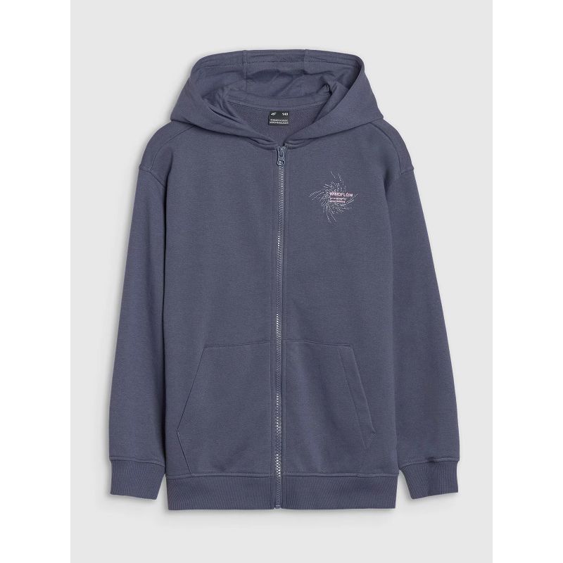 Bluza dresowa dziewczęca rozpinana z kapturem 4Fto praktyczny wybór na co dzień, idealny zarówno do casualowych, jak i sportowych stylizacji. Dzięki krojowi regular, bluza wygodnie dopasowuje się do dziecięcej sylwetki, zapewniając swobodę ruchów i komfort noszenia.