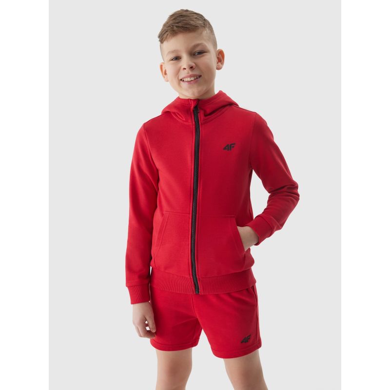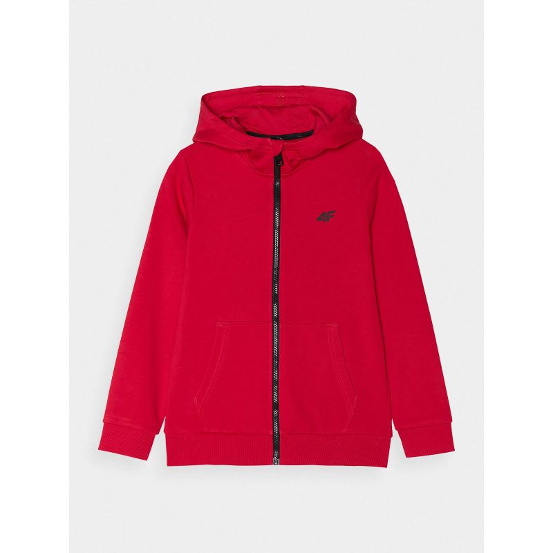 Idealnym uzupełnieniem zarówno casualowych, jak i sportowych, codziennych stylizacji jest bluza chłopięca z kapturem, zapinana na zamek. Dzięki regularnemu krojowi zapewnia wygodne dopasowanie, które podkreśla figurę. Zastosowany materiał to dresówka francuska frotte, która z jednej strony ma gładką powierzchnię, a z drugiej widoczny splot pętelkowy. Ten splot tworzy bardziej miękką, bardziej płynną teksturę, która jest lekka w dotyku. Zaprojektowana bez podszewki, ta bluza jest idealna na cieplejsze dni, ponieważ pozostaje lekka. Posiada zintegrowany kaptur przy szyi i elastyczne mankiety ze sznurkiem dla dodatkowej wygody. Dodatkowo po bokach znajdują się dwie otwarte kieszenie ułatwiające przechowywanie. Bluza zapinana jest na jednokierunkowy zamek główny, a u dołu posiada szeroki ściągacz zapewniający stylowe wykończenie.