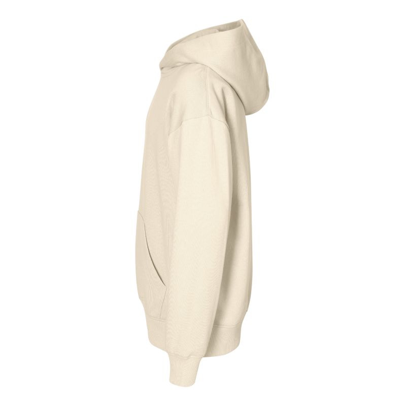 Terry, czesana od wewnątrz, 60 % bawełna, 40 % poliester (kompozycja może się różnić - kolor 12 - 75 % bawełna, 25 % poliester) bez etykiety - gotowy do rebrandingu, luźny krój ze szwami bocznymi, kaptur z podszewką, etykieta na lamówce z tyłu w neutralnym rozmiarze, wewnetrzna tylna część lamówki wzmocniana taśmą, przedłużona linia ramion, kieszeń typu kangurka, dolny ściągacz i mankiety rękawów z dzianiny ściągaczowej 2:2 z dodatkiem 5 % elastanu, czesana strona wewnętrzna