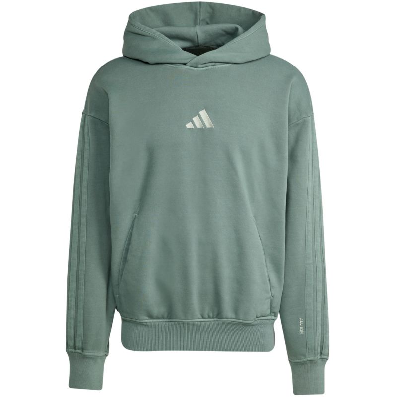 Bluza męska adidas A SZN W FL HD zielona JL6538 Bluza męska adidas sprawdzi się na co dzień. Przyjemna w dotyku, bawełniana tkanina. Dodatek poliestrowych włókien. Polarowe wyściełanie miękko otula skórę zapewniając ciepło. Luźny krój. Kaptur bez regulacji. Elastyczne mankiety przy rękawach i na dole bluzy. Frontowa kieszeń. Materiał: 70% bawełna, 30% poliester
