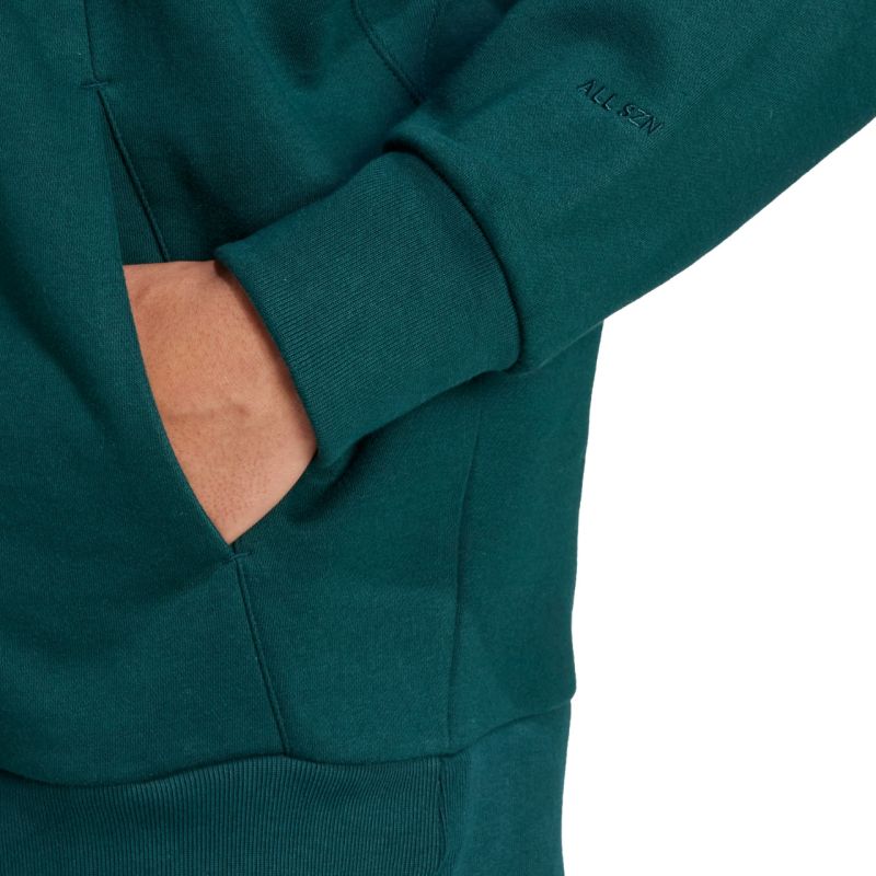Bluza męska adidas ALL SZN Fleece Full-Zip zielona JX5101 Bluza męska adidas sprawdzi się na co dzień. Przyjemna w dotyku, bawełniana tkanina. Dodatek poliestrowych włókien. Polarowe wyściełanie miękko otula skórę zapewniając ciepło. Luźny krój. Kaptur bez regulacji. Elastyczne mankiety przy rękawach i na dole bluzy. Otwarte kieszenie boczne. Zamek na całej długości. Materiał: 70% bawełna, 30% poliester