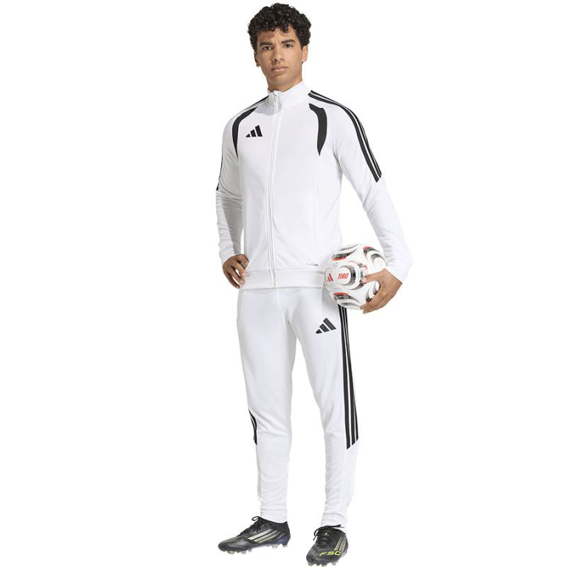 Bluza męska adidas Tiro 26 League Training biała KC1278 Bluza piłkarska adidas przeznaczona dla mężczyzn sprawdzi się podczas treningów. Stójka. Zamek na całej długości. Dopasowany krój. Technologia Climacoool pochłania i odprowadza wilgoć. Siateczkowe wstawki na klatce piersiowej. Zapinane kieszenie boczne. Patka chroniąca podbródek. Paski na rękawach. Subtelne logo. Włókna z recyklingu. Materiał: 100% poliester z recyklingu