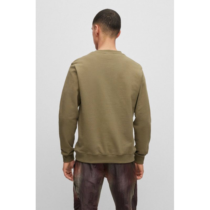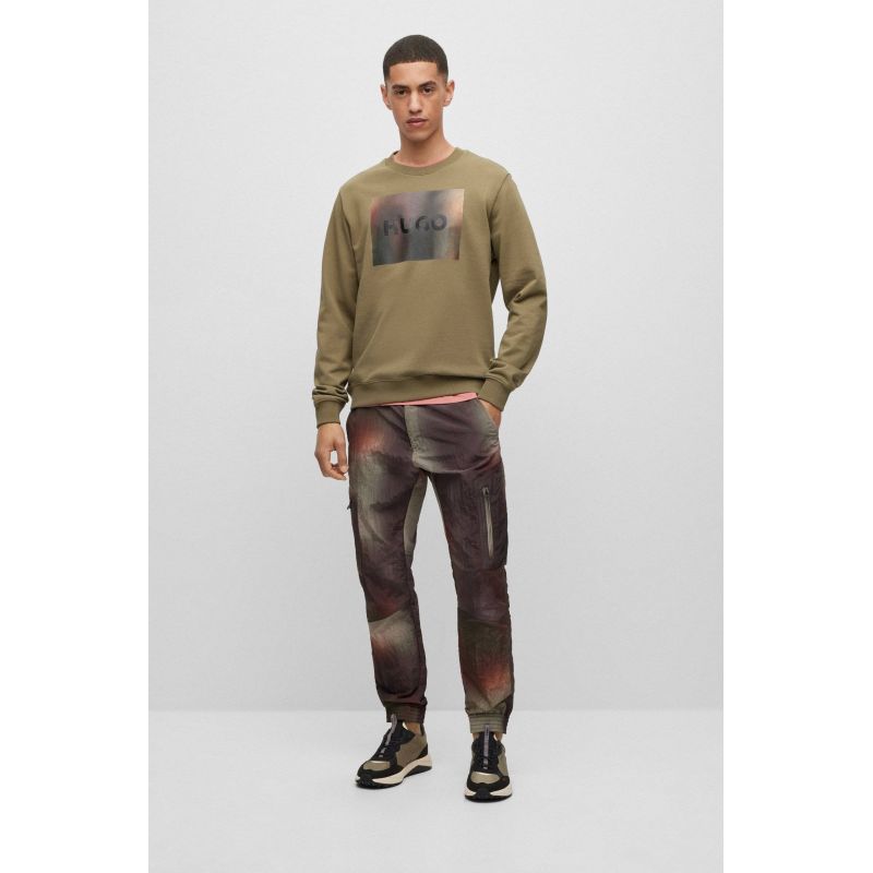 Wykonana z miękkiej bawełny frotte sportowa męska bluza. Wyróżnia się klasycznym designem i dużym logo Hugo na prostokątnym tel. Znakomicie sprawdzi się w lifestylowych stylizacjach.