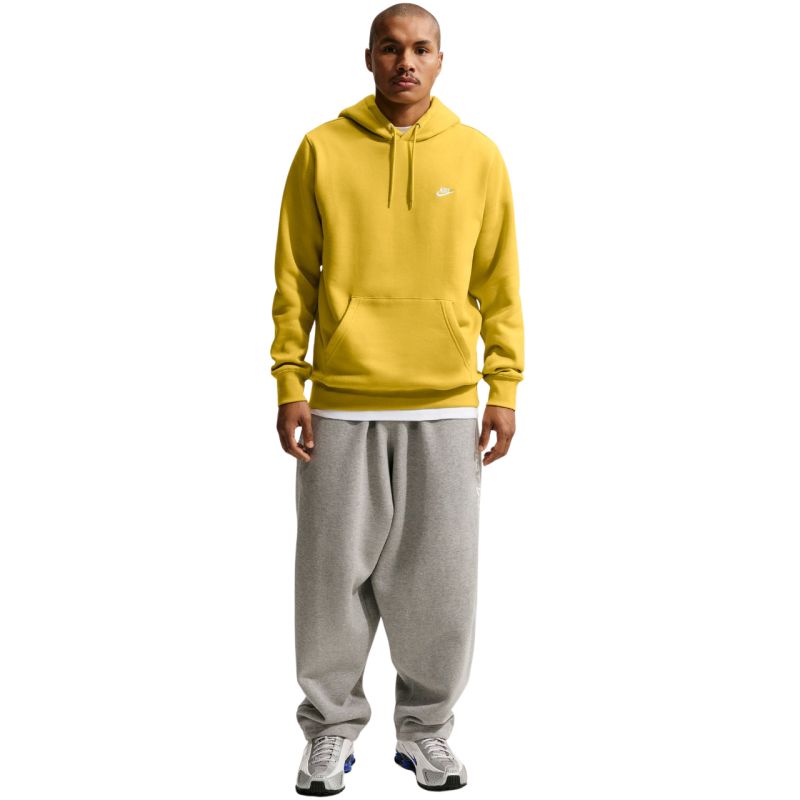 Bluza męska Nike Club BB żółta FN3859 389 Męska bluza Nike sprawdzi się na co dzień. Dominująca, bawełniana tkanina. Dodatek poliestru. Standardowy krój. Elastyczne ściągacze przy mankietach i u dołu. Kaptur regulowany za pomocą sznurka. Frotowa kieszeń. Dane techniczne:· Materiał główny: 67-81% bawełna, 19-33% poliester· Podszewka kaptura: 67-81% bawełna, 19-33% poliester