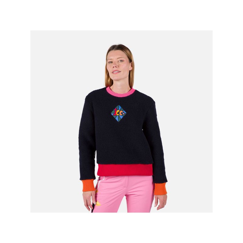 Damska bluza Rossignol W Lumy Fleece Sweat łączy w sobie szyk i wygodę, oferując wyjątkowy styl na chłodne dni. Stworzona we współpracy z Jean-Charles'em de Castelbajac, ta bluza wyróżnia się odważnymi, kolorowymi detalami, które dodają energii każdej stylizacji. Miękki, pluszowy polar typu teddy z wełnianą domieszką zapewnia luksusowe uczucie miękkości i ciepła, idealne na zimowe dni.