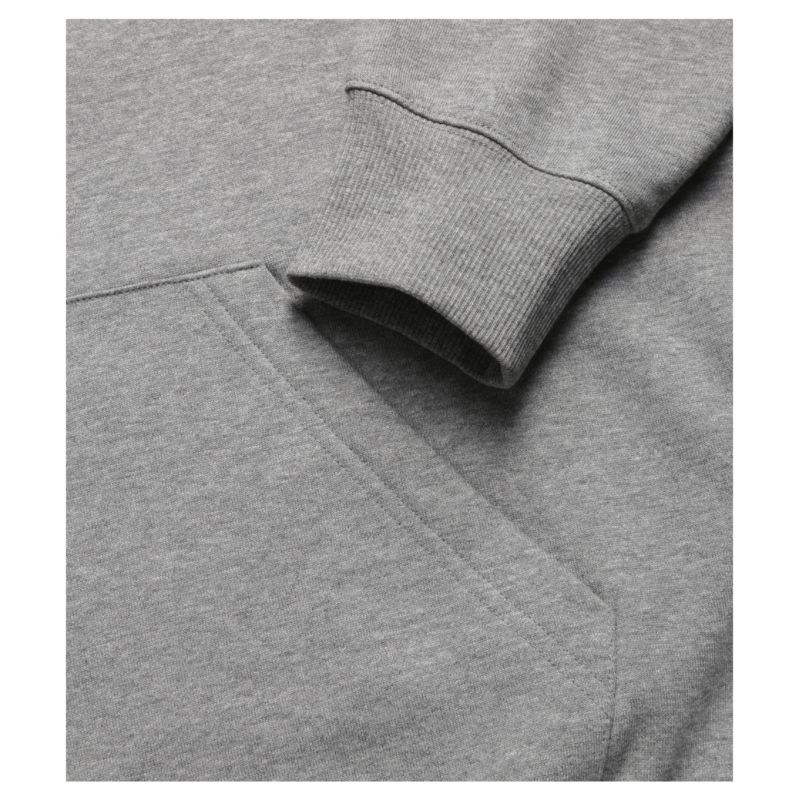 Terry, czesana od wewnątrz, 60 % bawełna, 40 % poliester (kompozycja może się różnić - kolor 12 - 75 % bawełna, 25 % poliester) bez etykiety - gotowy do rebrandingu, luźny krój ze szwami bocznymi, kaptur z podszewką, etykieta na lamówce z tyłu w neutralnym rozmiarze, wewnetrzna tylna część lamówki wzmocniana taśmą, przedłużona linia ramion, kieszeń typu kangurka, dolny ściągacz i mankiety rękawów z dzianiny ściągaczowej 2:2 z dodatkiem 5 % elastanu, czesana strona wewnętrzna