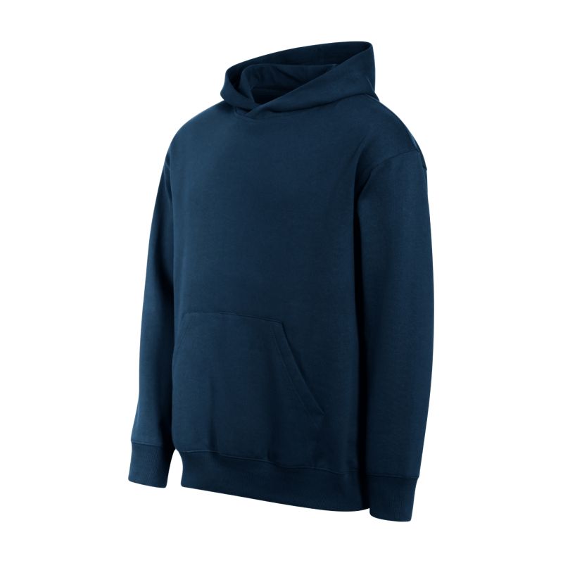 Terry, czesana od wewnątrz, 60 % bawełna, 40 % poliester (kompozycja może się różnić - kolor 12 - 75 % bawełna, 25 % poliester) bez etykiety - gotowy do rebrandingu, luźny krój ze szwami bocznymi, kaptur z podszewką, etykieta na lamówce z tyłu w neutralnym rozmiarze, wewnetrzna tylna część lamówki wzmocniana taśmą, przedłużona linia ramion, kieszeń typu kangurka, dolny ściągacz i mankiety rękawów z dzianiny ściągaczowej 2:2 z dodatkiem 5 % elastanu, czesana strona wewnętrzna