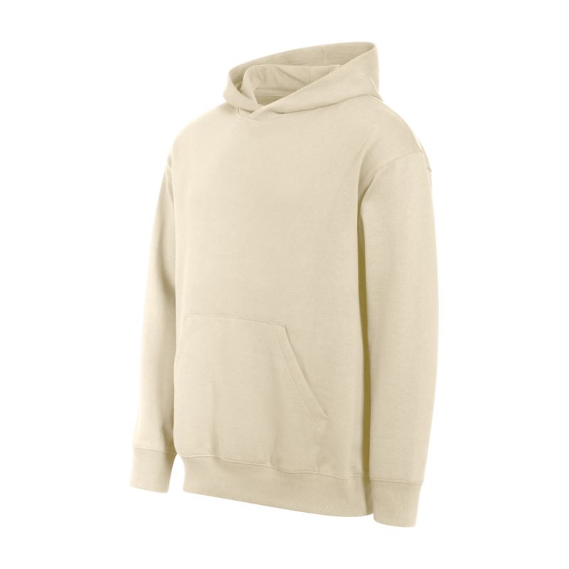 Terry, czesana od wewnątrz, 60 % bawełna, 40 % poliester (kompozycja może się różnić - kolor 12 - 75 % bawełna, 25 % poliester) bez etykiety - gotowy do rebrandingu, luźny krój ze szwami bocznymi, kaptur z podszewką, etykieta na lamówce z tyłu w neutralnym rozmiarze, wewnetrzna tylna część lamówki wzmocniana taśmą, przedłużona linia ramion, kieszeń typu kangurka, dolny ściągacz i mankiety rękawów z dzianiny ściągaczowej 2:2 z dodatkiem 5 % elastanu, czesana strona wewnętrzna