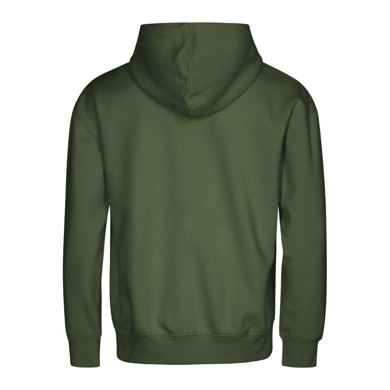 Terry, czesana od wewnątrz, 60 % bawełna organiczna, 40 % poliester z recyklingu (GOTS) bez etykiety - gotowy do rebrandingu, luźny krój ze szwami bocznymi, kaptur z podszewką ściągany za pomocą sznurka, etykieta na lamówce z tyłu w neutralnym rozmiarze, wewnetrzna tylna część lamówki wzmocniana taśmą, przedłużona linia ramion, kieszeń typu kangurka, dolny ściągacz, mankiety i lamówka z dzianiny ściągaczowej 2:2 z dodatkiem 5 % elastanu, czesana strona wewnętrzna