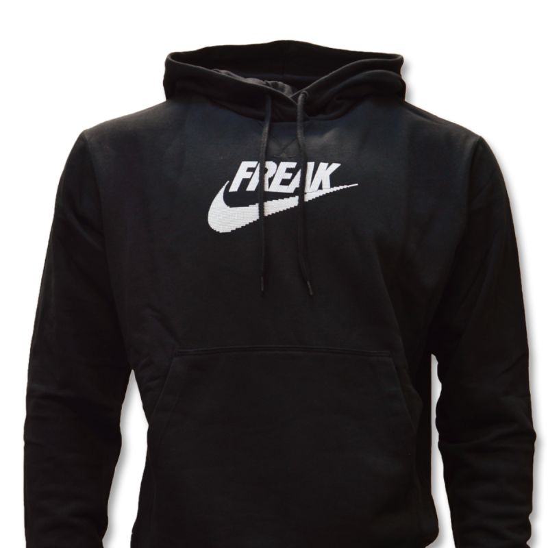 Bluza w klasycznym, czarnym kolorze z białymlogotypem FreakSwoosh na piersiach.